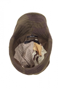 Ziggy Chen 6 panel long peaked hat, with contrasting khaki band. The peak and sides are multilayered with stitch detail and can be rolled down. Fully lined inside with various striped fabrics and with dark khaki band. An excellent hat!!