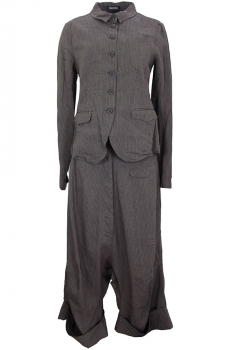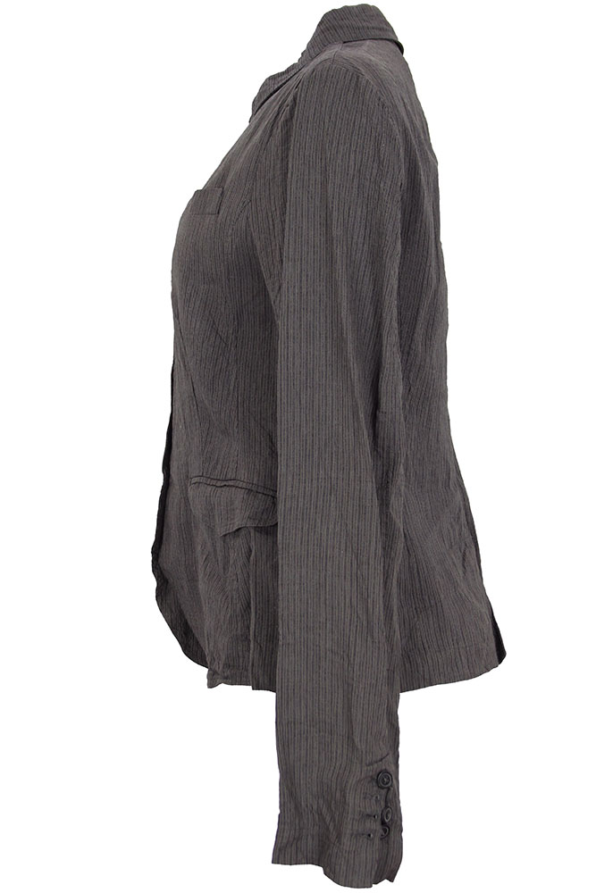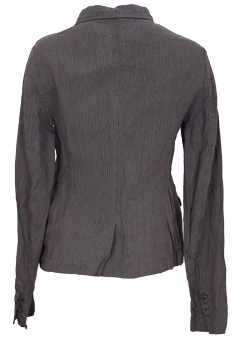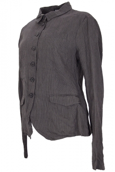 Rundholz Mainline Collection Shorter, cut-away style jacket in Asteroid Stripe (grey Stripe). Small, shirt style collar. 7 button fastening. Left chest pocket with trim and 2 main pockets with shaped flaps and trim. 4 button working cuffs. Central vent at rear. Beautiful crisp fabric. This jacket matches both trousers in the same fabric making a beautiful suit.