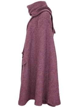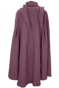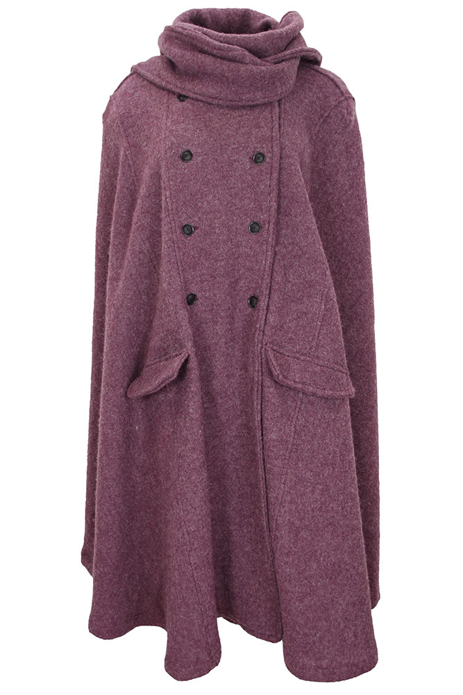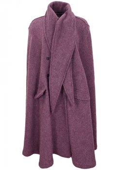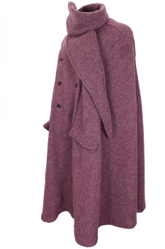 Barbara Bologna One-size, oversized, extra wide, double-breasted wool cape, with large collar with extending ties at the front. 2 columns of 4 buttons down the front. 2 fake pockets with flaps. No pockets or armholes and perfect cape. A very full and luxurious garment.