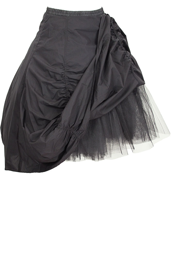 Rundholz Mainline Collection Hand-made outer cotton skirt with elaborate ruching and and stunning shape. Side zip fastening. Inside 4 layered, very full net Frou-Frou in black, with elasticated gathered waist band. Together these 2 garments make a very full and stunning skirt.