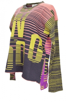 Vivienne Westwood Bruno Jumper in multi coloured designed wool cotton blend. Round, ribbon marl neck. Long soft knit sleeves. Longer at rear. Stitch finished hems. A beautiful soft, knitted jumper in a great design. Sized S/M but is oversized and will fit a large.