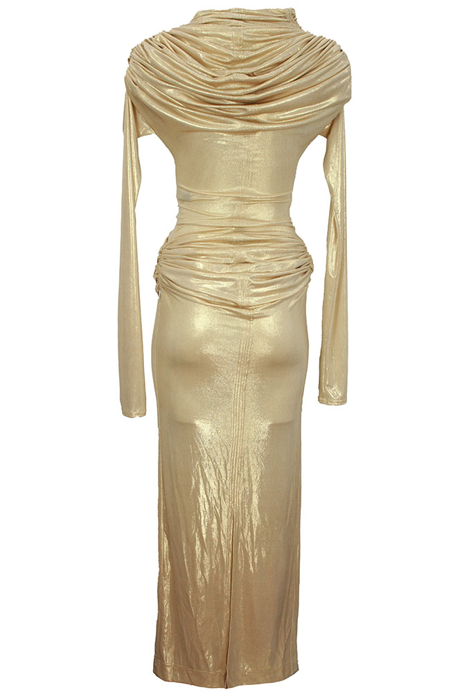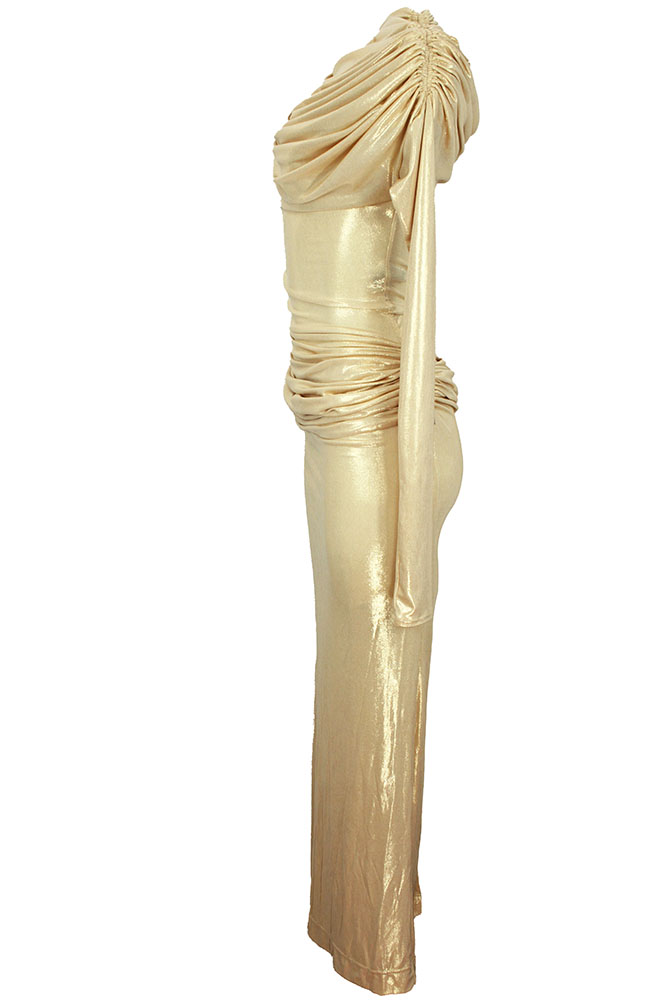 DAVIDS ROAD GOLD DRAPING FULL LENGTH DRESS