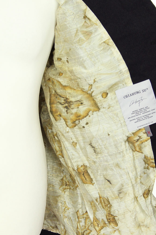 CHIAHUNG SU MIXED FABRIC LONG LAYERED JACKET